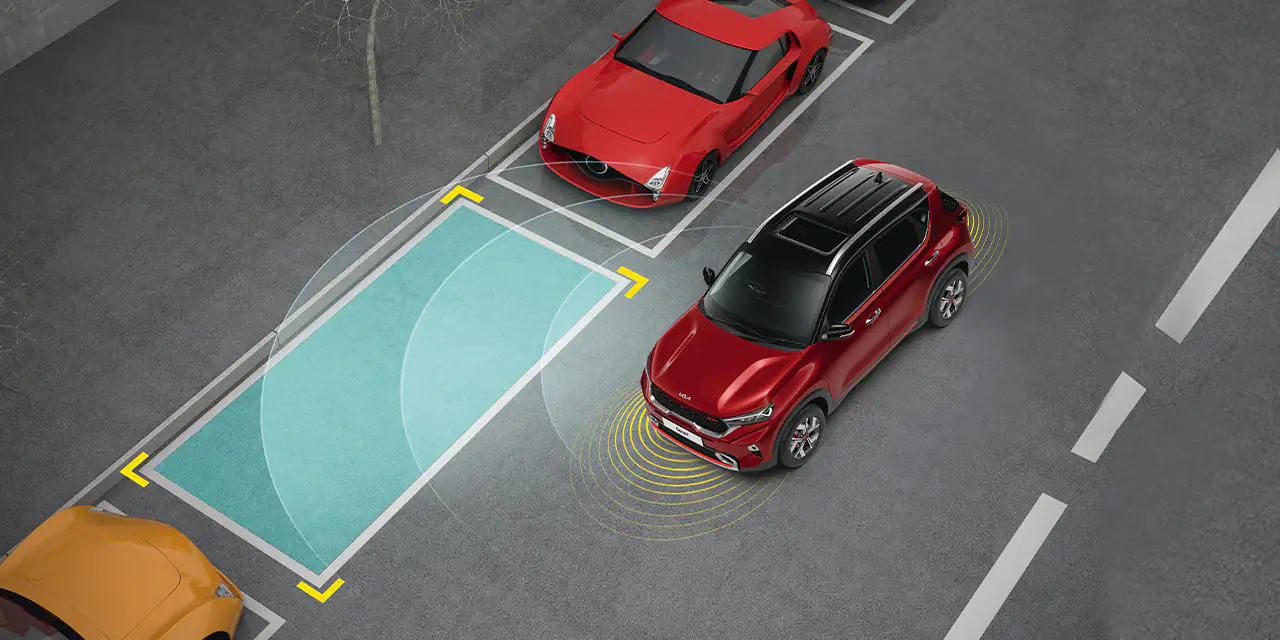 The Kia Sonet commands immediate attention with its distinctive Tiger Nose grille featuring chrome accents and integrated positioning lights. This signature design element creates a bold, confident front face that establishes the Sonet's premium positioning in the sub-compact SUV segment.