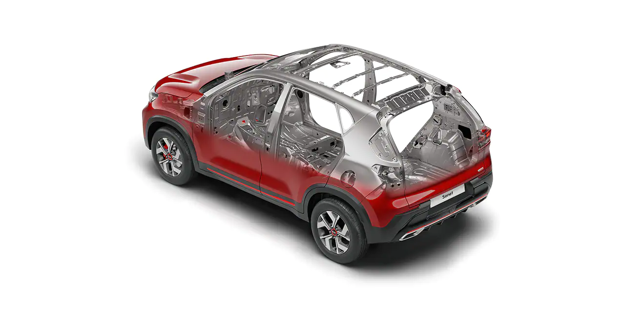 The Kia Sonet commands immediate attention with its distinctive Tiger Nose grille featuring chrome accents and integrated positioning lights. This signature design element creates a bold, confident front face that establishes the Sonet's premium positioning in the sub-compact SUV segment.